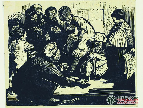 老乡们很喜欢古元的作品,但也提出了他们的看法:“为啥脸孔一片黑一片白,长了这么多黑道道?”于是古元意识到,要让更多的群众接受,必须要改变西方版画的创作手法,把更多中国传统的、民间的元素融到里面。这一时期古元的版画风格逐渐明朗,黑色的块面减少,采用了民间喜欢的阳刻线条。