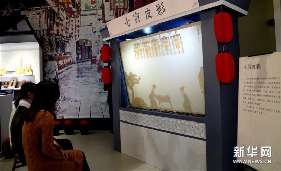 4月10日,观众在上海海派艺术馆里观看七宝皮影戏表演。