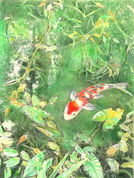 《池中的鱼》彩铅画15.2x20.3厘米2019年4月