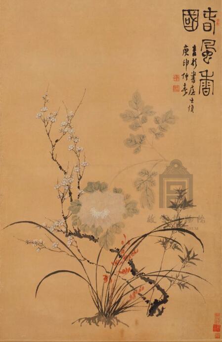 《管城春满图》轴·清·载淳绘·62.5×31.3cm